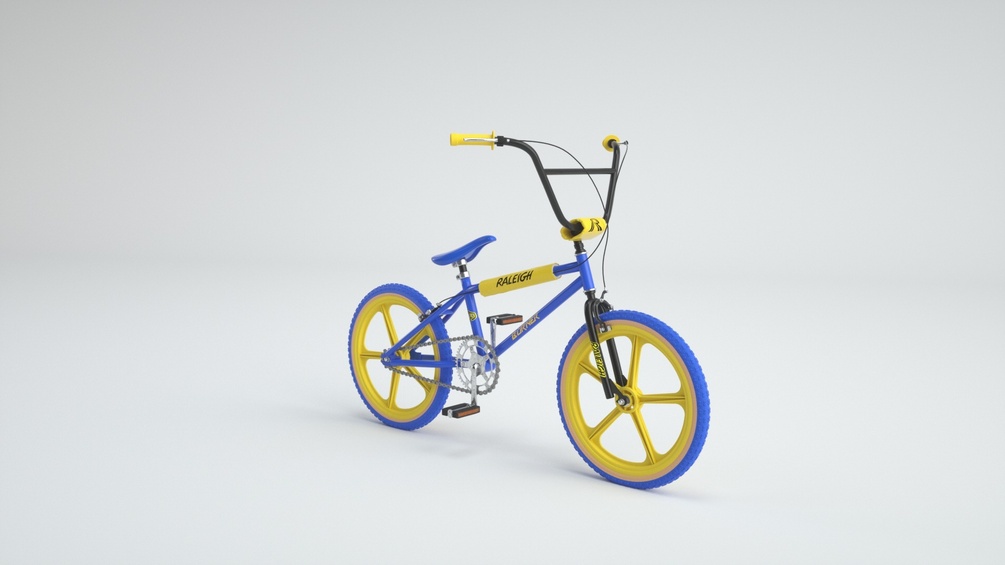 This file contains a Retro 1980s Raleigh Burner BMX Bicycle. The model is made with Cinema4d and the previews are rendered with Octane render.